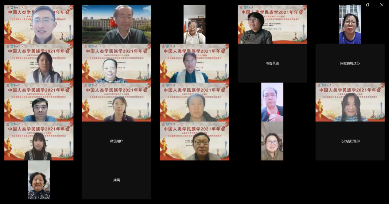 中国人类学民族学研究会年会于2022年11月30至12月1日以线上线下相结合的方式在暨南大学举行。这次会议的主题为“认真学习贯彻党的二十大精神,在全面建设社会主义现代化过程中不断铸牢中华民族共同体意识”。我校民族研究中心与内蒙古河套学院乌拉特文化研究中心共同承办了题为“中华民族共同体建设历程中的蒙古族乌拉特部研究”的专题学术会议。此专题会议于2022年11月30日晚19时至22时在云端(腾讯会议)举行。