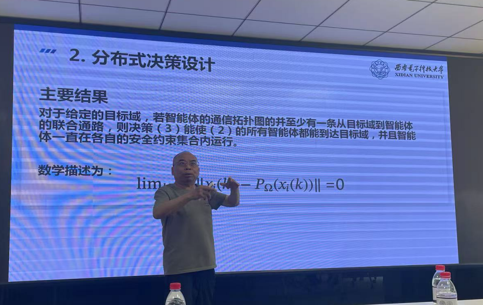 李智教授结合应急场景的多元约束特性分析,探讨分布式决策框架的理论建构过程,提出分布式决策的三维分析模型:(1)凸位置约束:如城市应急中的建筑边界、封锁区等,此类约束呈现规则几何形态,可通过半空间交集建模,利用线性规划实现智能体路径规划。(2)非凸速度约束:聚焦智能体物理特性与环境干扰,此类约束形成非线性流形空间,需构建安全速度边界。(3)切换通信拓扑:针对应急场景中常见的通信中断问题,李智教授提出切换通信拓扑的方式,确保决策信息的有效传输。