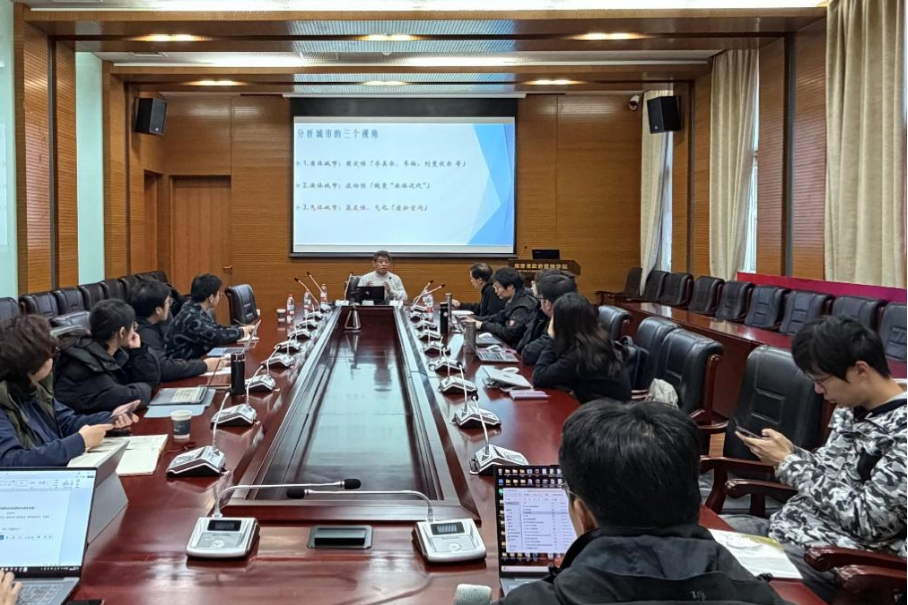 作为长期深耕城市研究、国际地域比较研究及海洋城市与文化领域的国际知名专家,芮东根教授兼具理论深度与跨地域研究视野。讲座伊始,他便打破传统城市研究的单一视角,提出“固体-液体-气体”三维分析框架,为在场听众重构了数字化时代城市观察的全新维度,其创新性的理论视角一开场便引发了师生们的浓厚兴趣。在理论阐释环节,芮东根教授系统梳理了城市研究的理论演进脉络。他指出,传统城市研究多聚焦“固体城市”的固定性,如齐美尔、韦伯、列斐伏尔等学者关注的物理空间与社会结构稳定性;鲍曼“液体现代性”则将城市特质推向“流动性”,强调身份与空间的动态变化。而进入数字化时代,城市正呈现出更具颠覆性的“气态”特征——“完全非物质化”与“超连接”成为核心标签。