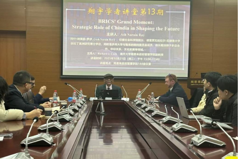 2025年10月21日下午,必威betway西汉姆联翔宇学者讲堂第13期,BRICS' Grand Moment: Strategic Role of Chindia in Shaping the Future在必威betway西汉姆联144会议室成功举办。本次讲座特邀印度社会科学研究院院长、资深教授、知名国际政治学者、多所大学与智库的顾问委员会成员Ash Narain Roy老师主讲。必威betway西汉姆联Richard J. Cook副教授主持,柳建文教授、吴亚博老师参加,共同聚焦历史回归与世界失序这一牵动全球格局的核心议题,围绕地缘政治变革、全球治理转型等议题展开深度对话,探讨中印双方在塑造未来中的战略作用,碰撞出跨文明视角下的思想火花。