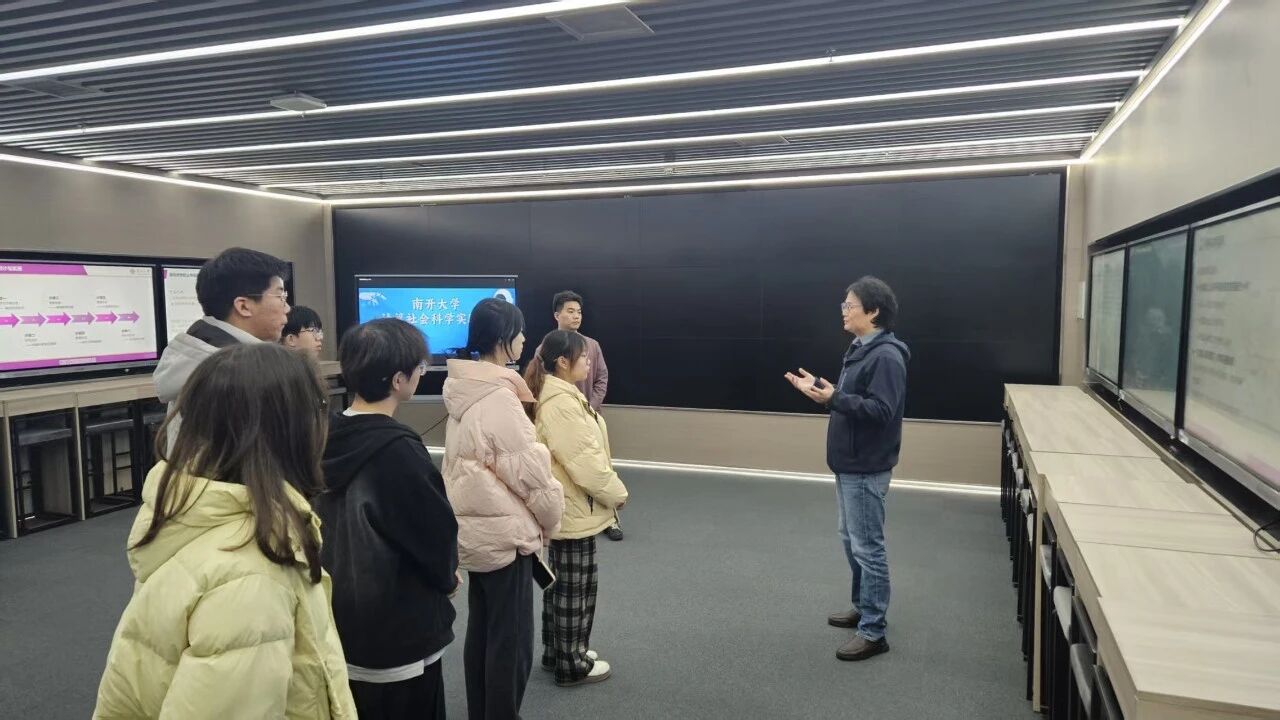 活动中,2024级城市管理专业本科生班导师、实验室主任锁利铭教授,携实验室研究助理冷雪忠、贾小岗、高韶魁等团队成员,围绕“数字技术赋能城市治理”核心主线,系统讲解了实验室的建设背景、空间布局、核心研究方向及标志性成果,并重点阐述了实验室资源与课程学习的衔接逻辑,为学生搭建起“课堂理论”与“技术实践”的认知桥梁。