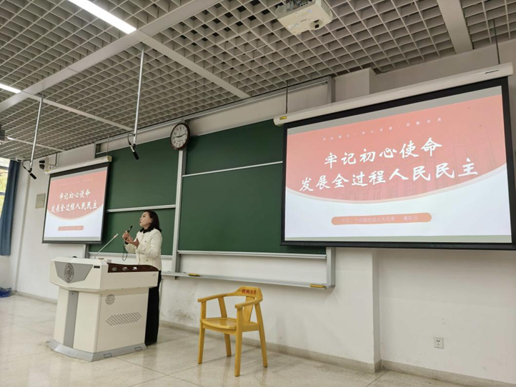讲座伊始,董彩云代表从全过程人民民主概念引入代表履职实践的主题。2019年11月2日,习近平总书记考察上海市长宁区虹桥街道基层立法联系点时,首次提出“人民民主是一种全过程的民主”。习近平总书记强调,要充分发挥人民代表大会制度在发展全过程人民民主中的重要制度载体作用。