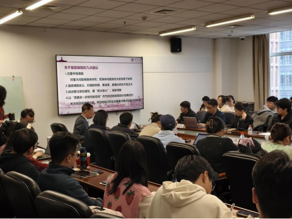 在讲解科研项目破题方法时,朱光磊教授提出了几点具体建议。在研究问题的发掘上,应运用“两头挤”的思路,通过宏观理论与微观经验的双向推进,形成具有解释力的中观研究框架;在项目撰写过程中,对课题价值的表述要恰如其分,避免过分强调;在研究综述写作上,需坚持“抓大放小、线条清晰”的原则;在研究实施过程中,要注重理论研究与现实实践相结合,推动研究不断向“深化、细化、具体化”的方向发展。