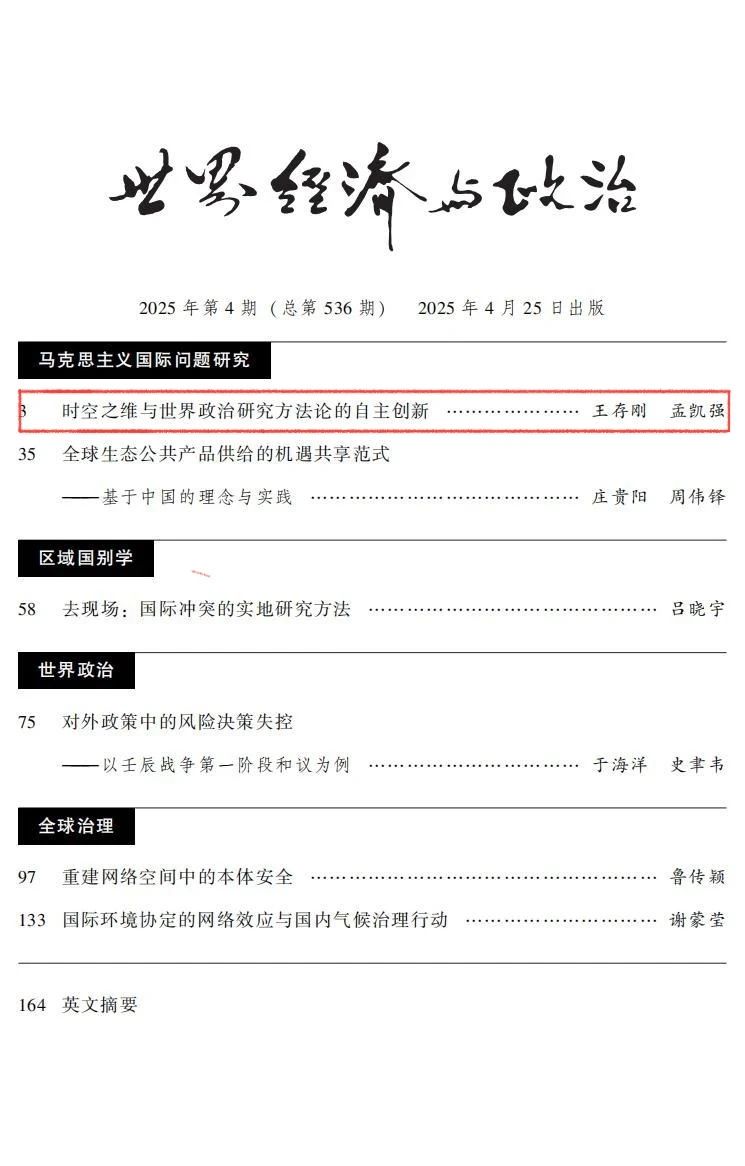 时空之维;世界政治;方法论;自主知识体系;历史辩证法
