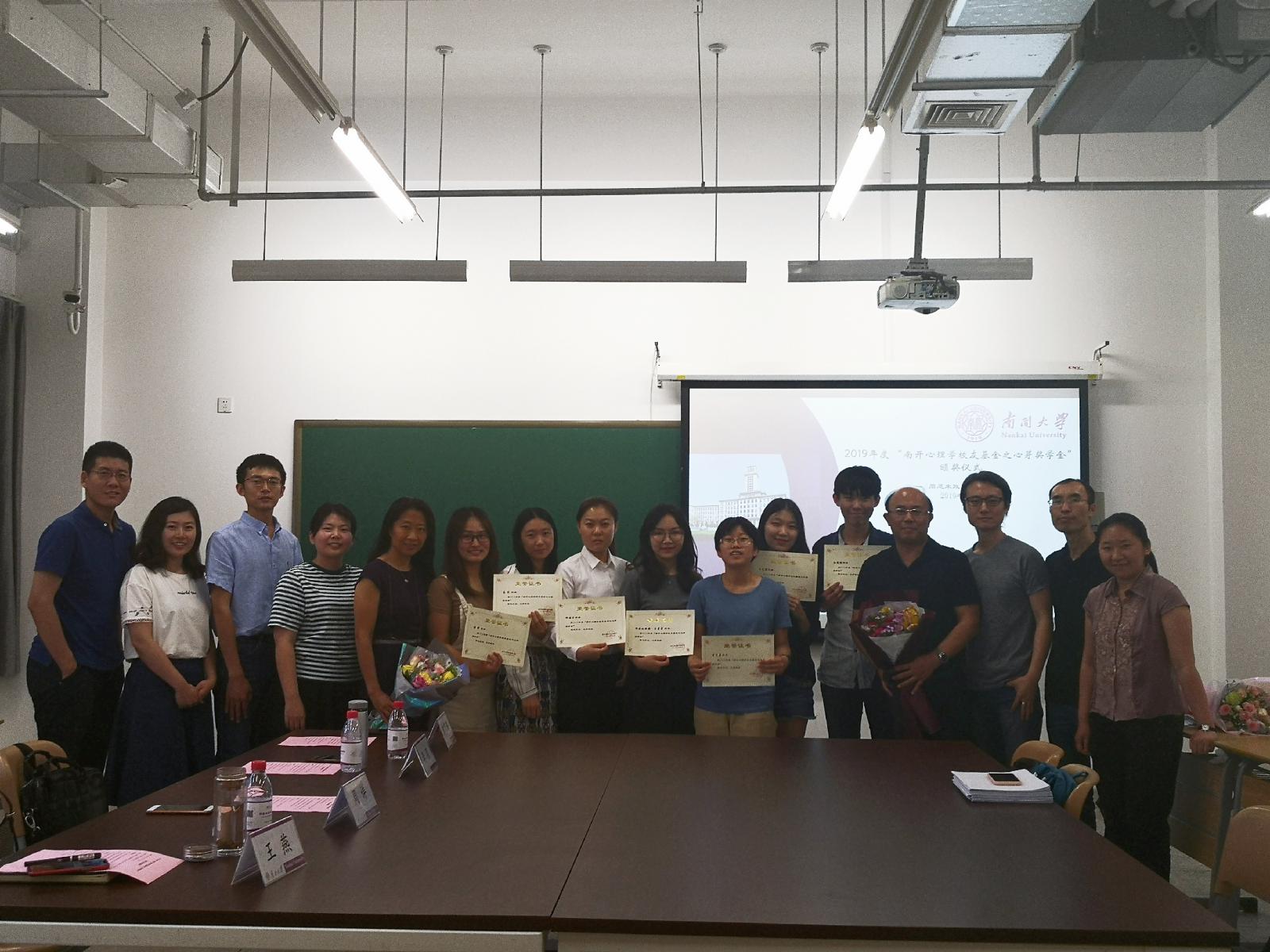 (通讯员:郑宗鹏 孔航)6月3日,2019年度“南开心理学校友基金之心芽奖学金”颁奖仪式在必威betway西汉姆联221教室举行。学院社会心理系主任李强、副主任周详、2016级本科生辅导员王燕、2018级本科生辅导员郑宗鹏及相关专业教师出席了本次活动。