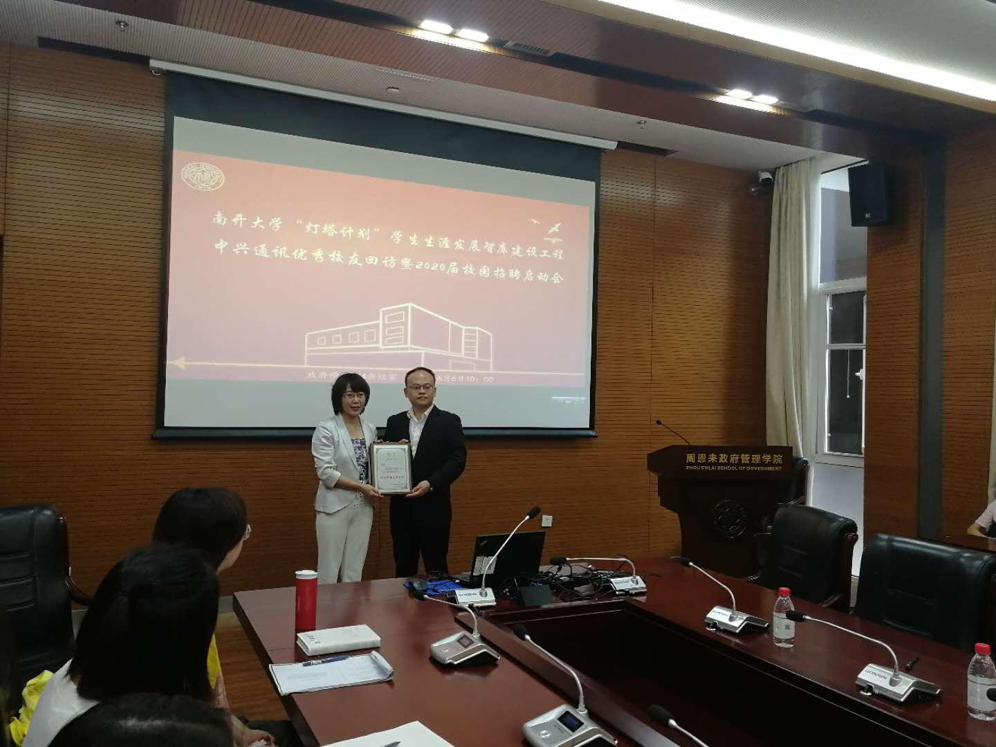 Betway·必威(西汉姆联)“灯塔计划”学生生涯发展智库建设工程之中兴通讯优秀校友回访暨2020届南开校园招聘启动会于2019年6月6日上午在必威betway西汉姆联成功举办。毕业于政府学院社会心理学系的2010届校友、中兴通讯亚太及独联体海外营销事业部人力资源总监王楠回访母校,中兴通讯人力资源专员陈芳芳、政府学院党委书记王慧、以及辅导员代表、学生代表参加活动。活动由政府学院党委副书记兼副院长高磊主持。