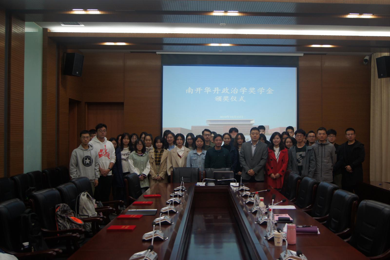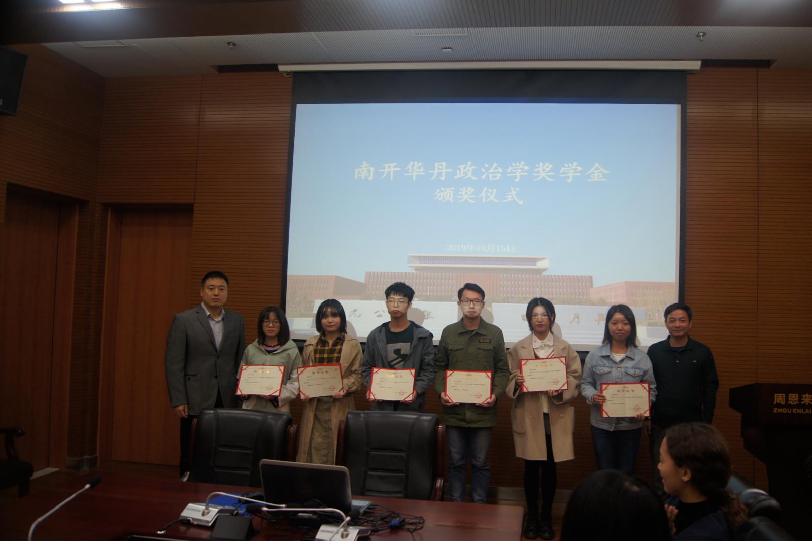 (通讯员:王燕 钟明军)2019年10月15日中午,“南开华丹政治学奖学金”颁奖仪式于必威betway西汉姆联144会议室顺利召开。必威betway西汉姆联副院长程同顺教授、学院党委副书记兼副院长高磊出席,6名获奖同学以及其他师生代表共同参加了本次活动。
