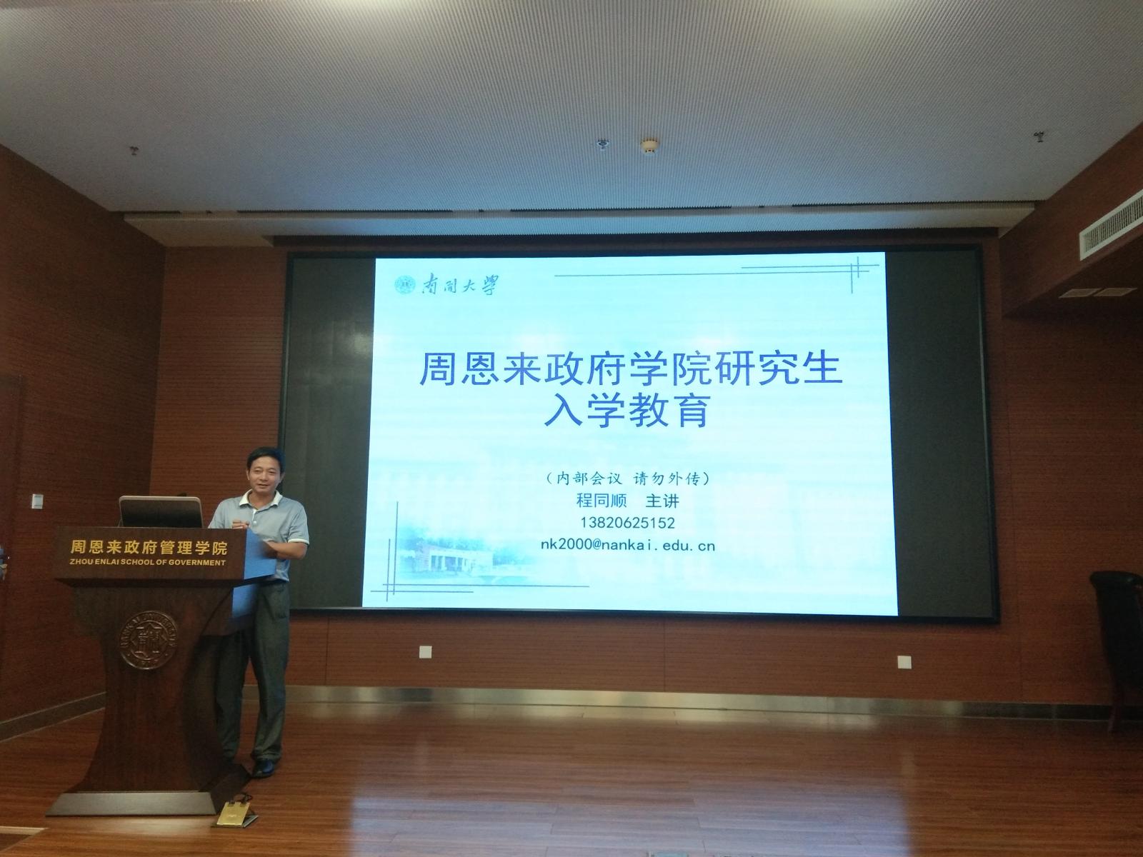 程同顺在科研诚信与学风建设讲座中就明确来南开的目标、明确研究领域和选题、明确学校在不同阶段要求、明确学术规范和规矩、明确发展条件和机遇等方面进行讲解。