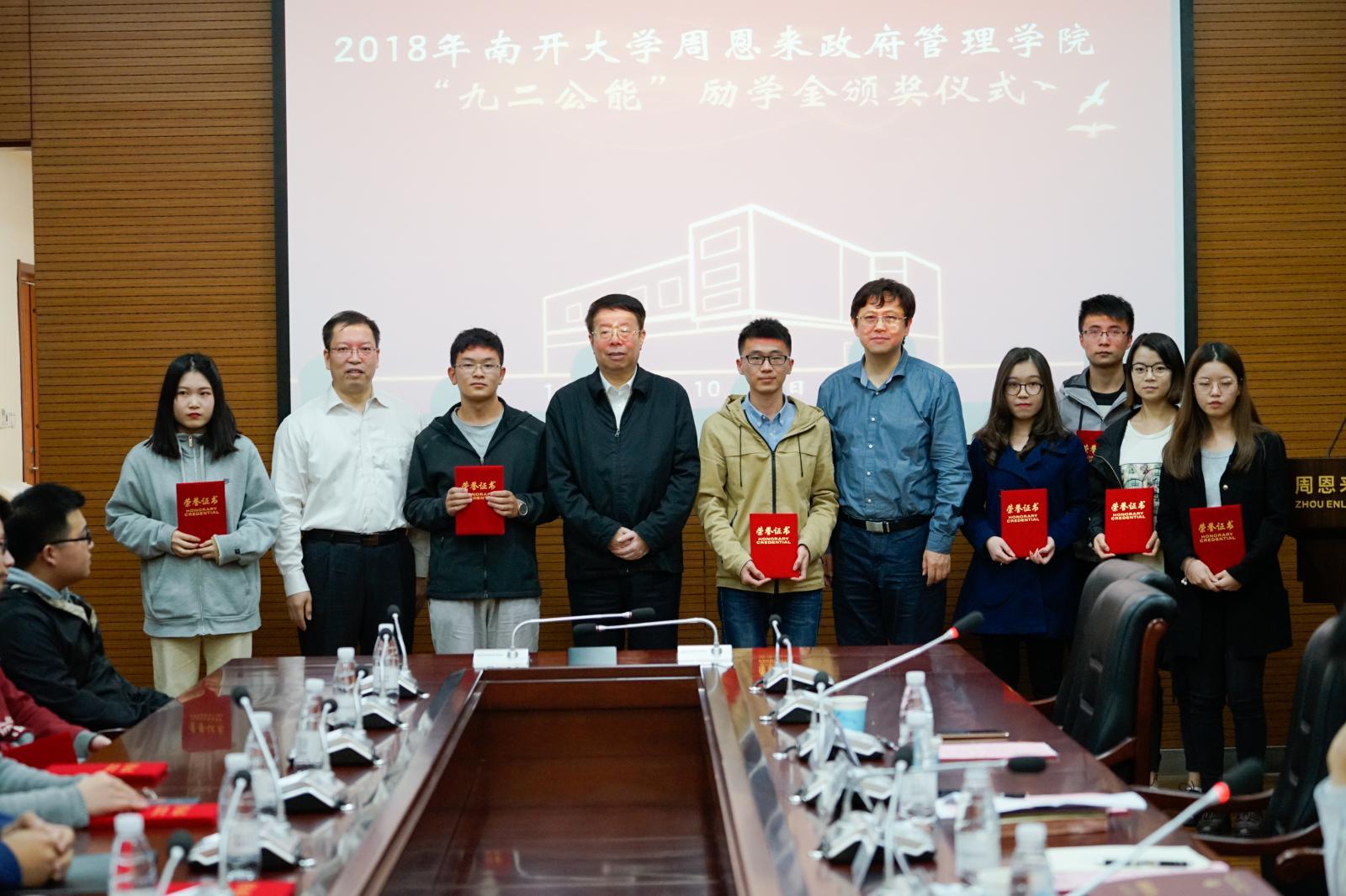 10月19日,2018年必威betway西汉姆联“九二公能”励学金颁奖仪式于政府学院144会议室成功举办。Betway·必威(西汉姆联)党委常委、副校长朱光磊,捐赠方代表、政治学系1992级校友、Betway·必威(西汉姆联)膳食服务中心主任蓝海,必威betway西汉姆联院长孙涛出席本次颁奖仪式。必威betway西汉姆联党委副书记兼副院长高磊主持本次颁奖仪式。此次颁奖仪式共由1992级校友代表、政府学院师生代表等40余人一同参加。来自政府学院的20位品学兼优、家庭经济困难的南开学子获得资助。