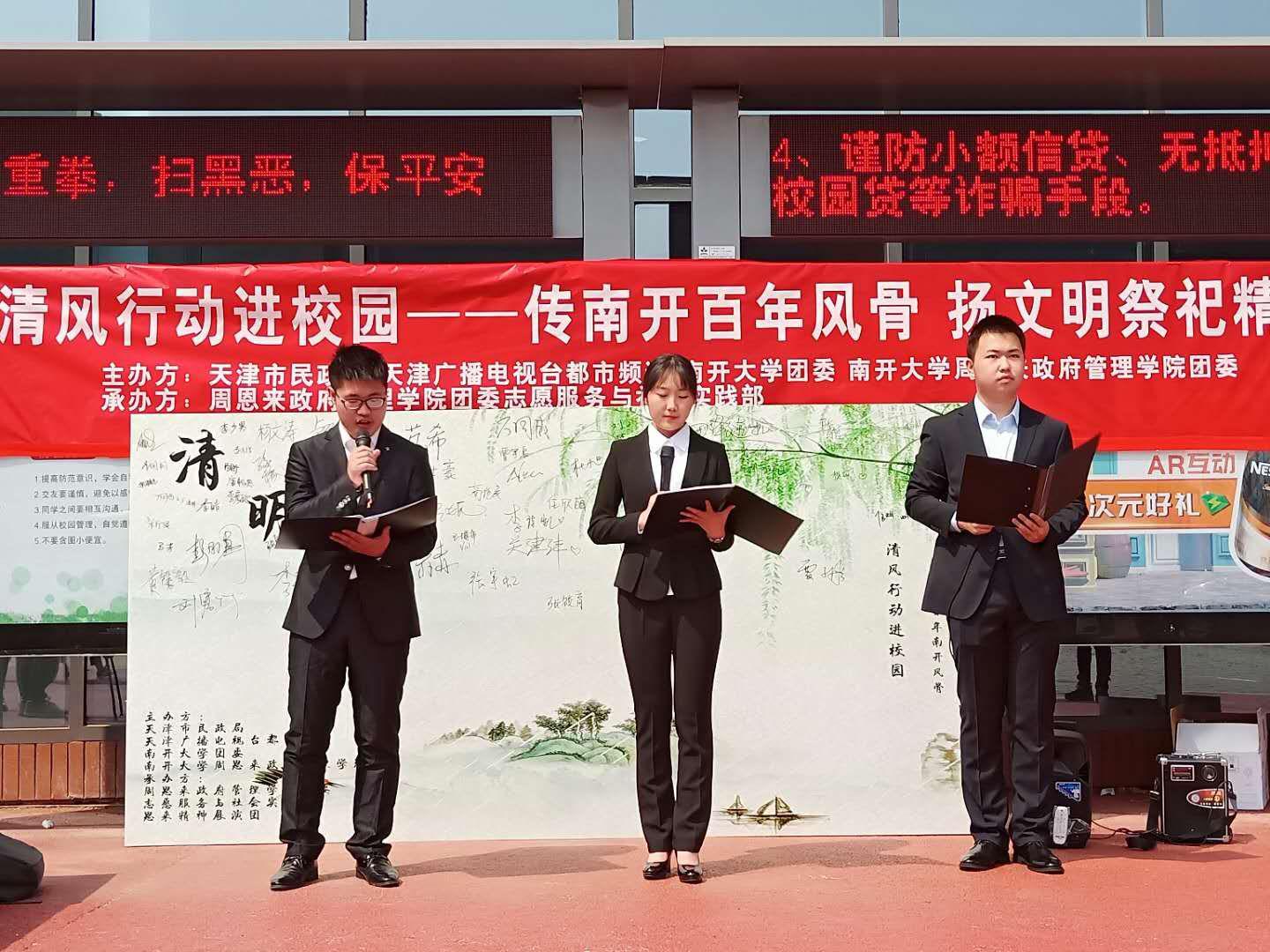 2019年4月4日中午,“清风行动进校园”第十五届文明共祭宣讲活动暨“清明共祭”培训会于Betway·必威(西汉姆联)津南校区文科小广场成功举办。天津市民政局殡葬管理处代表同志李奉起,必威betway西汉姆联党委副书记、副院长高磊,必威betway西汉姆联团委老师王燕和40余名志愿者参加了本次活动。“清风行动进校园”活动旨在通过系列宣讲,树立殡葬文明新风尚,推广生态殡葬理念。