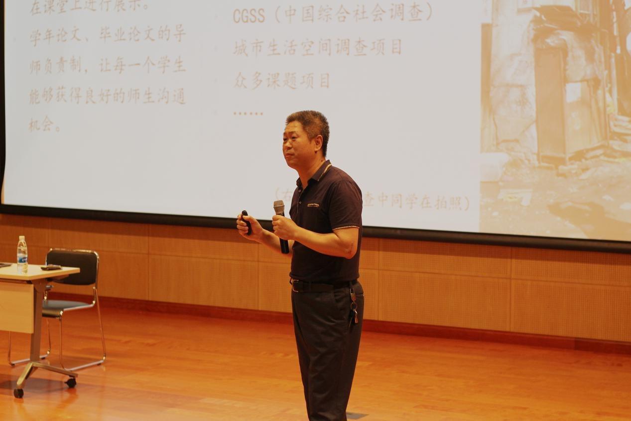 会议伊始,程同顺教授发表讲话,他简单介绍了政府学院的专业构成和光荣的文化传统,勉励新生们坚定选择、不负期望。随后,各专业教师代表围绕本专业的结构与特色展开介绍。社会学系主任宣朝庆展示了社会学培养能力的方向、学习和学术活动的成果;社会工作与社会政策系主任吴帆重点介绍了社会工作者的人文特质及未来发展等;社会心理学系讲师岸本鹏子着重阐释了本专业的基本结构和研究内容;政治学系主任郭道久用生动的例子突出了本专业贴近时政和趣味可学的特点;行政管理系主任徐晓日讲解了本专业的基础要素和就业方向等;国际关系系主任王翠文强调了学生毕业走向及海外影响力。老师们精心准备了课件和全面详细的介绍内容,同学们始终专注认真地听讲,并不时地举手提问,对政府学院的各个专业都产生浓厚的兴趣。