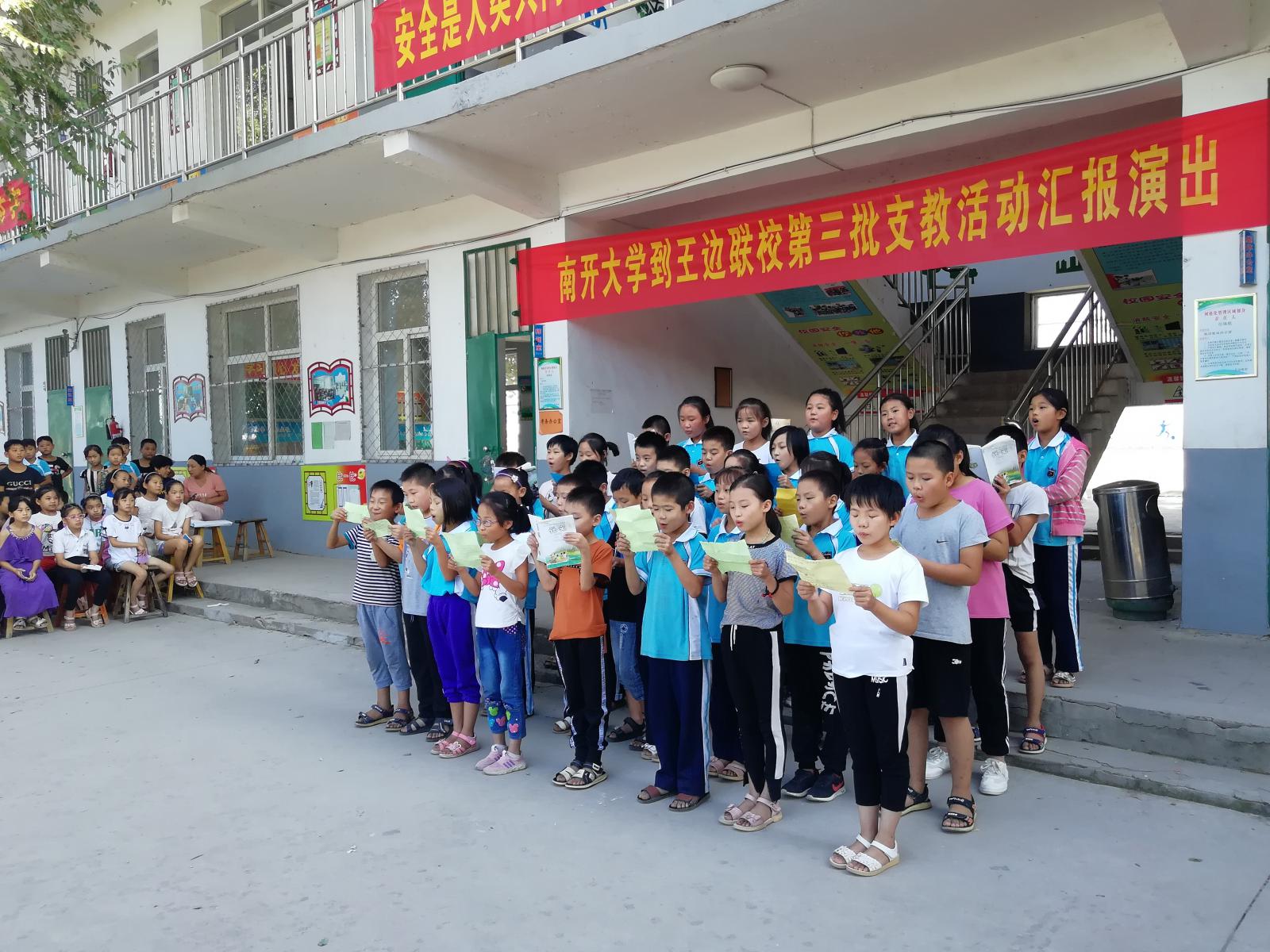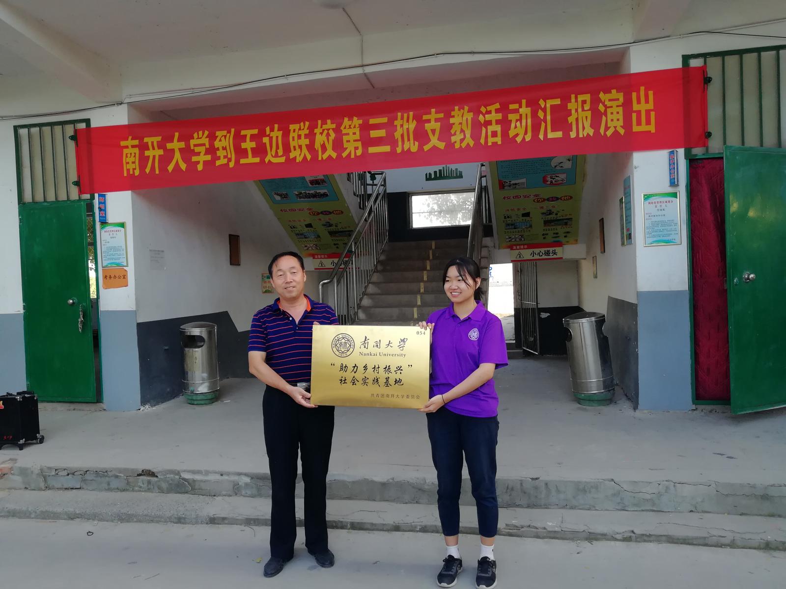 (通讯员:王静文)9月7日下午,我院团委志愿服务与社会实践部赴河北邯郸暑期社会实践团在支教的王边联校举办了汇报演出暨授牌仪式,总校张书记、王边联校王校长、支教队全体成员以及全校师生共同参加,为七天的支教活动划上了一个圆满的句号。