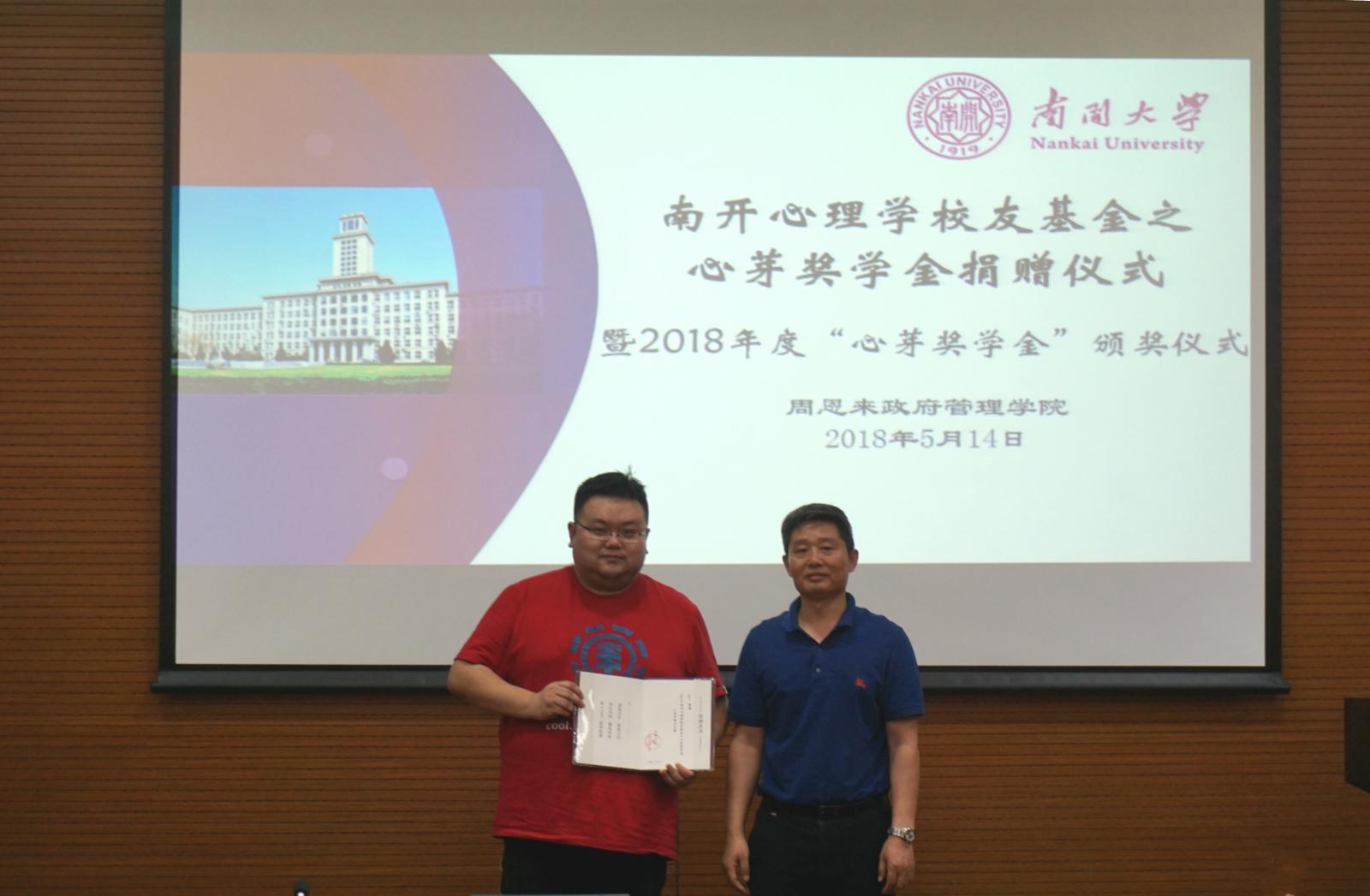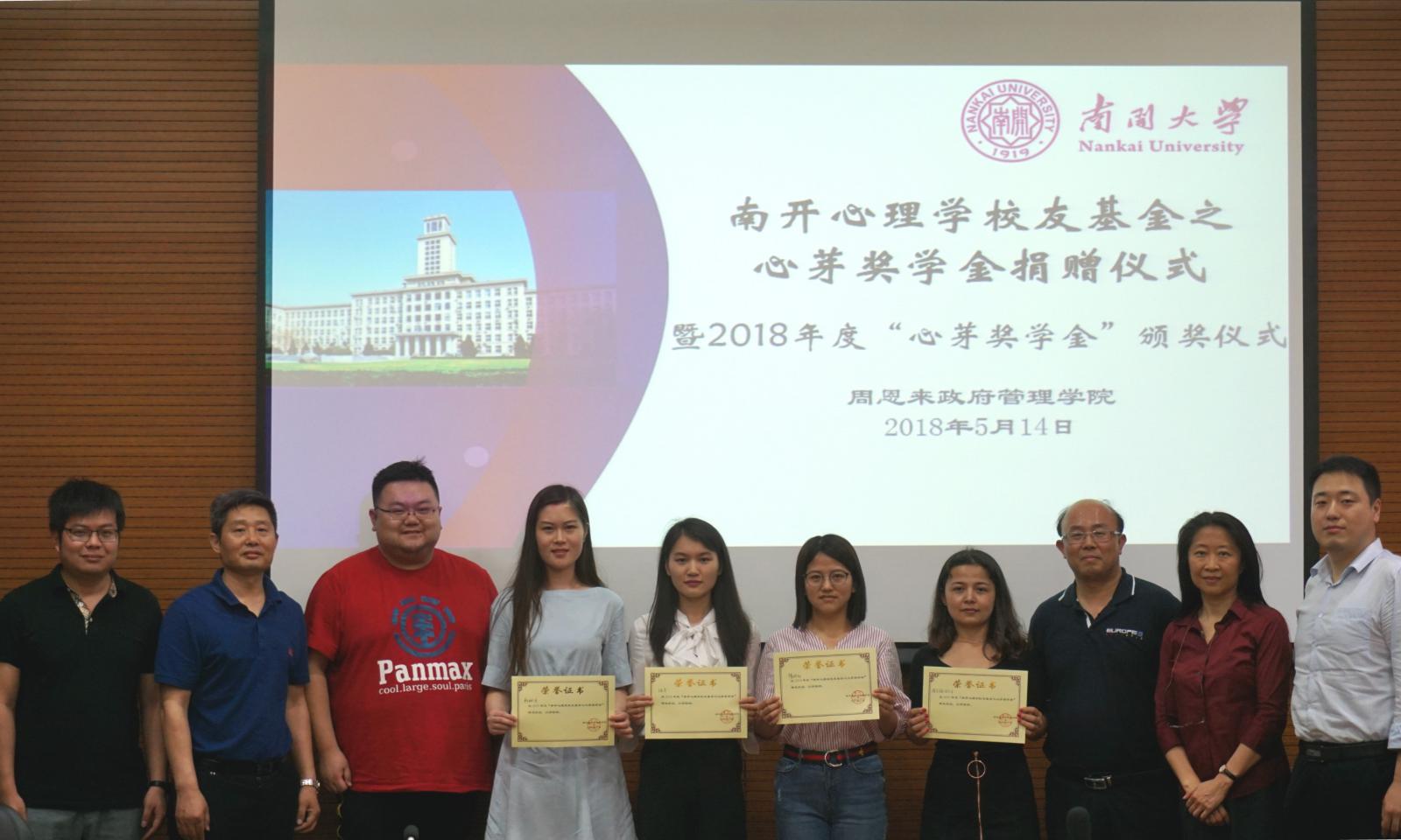 5月14日,“南开心理学校友基金之心芽奖学金”捐赠仪式暨2017-2018年度“心芽奖学金”颁奖仪式在必威betway西汉姆联会议室举办。学院2005级应用心理学专业本科生、博学(北京)国际教育咨询有限公司总经理郭鹏、Betway·必威(西汉姆联)教育基金会副秘书长陆建军、学院相关领导及社会心理学系主任李强、班导师和专业教师出席了本次活动。