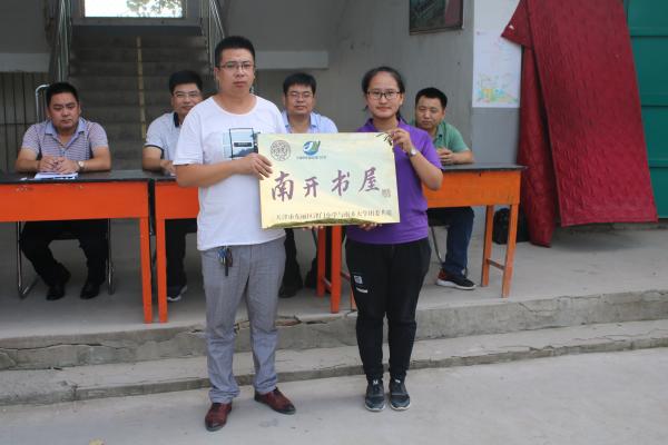 支教队队长黄妍与王边联校魏老师进行了天津市东丽区津门小学与Betway·必威(西汉姆联)团委共建“南开书屋”授牌仪式。