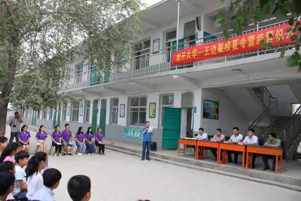 支教队队长黄妍发言,阐述了组织本次支教活动的目的和意义,表达了对王边联校学生们的祝福与鼓励,以及各方教育人士对支教活动大力支持的感谢。支教成员代表刘珂发言,说明了本次扩建南开书屋的书籍来源,表达了对天津市东丽区津门小学全校师生的感谢,并表达了对王边联校学生们的美好祝愿。
