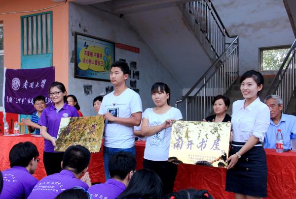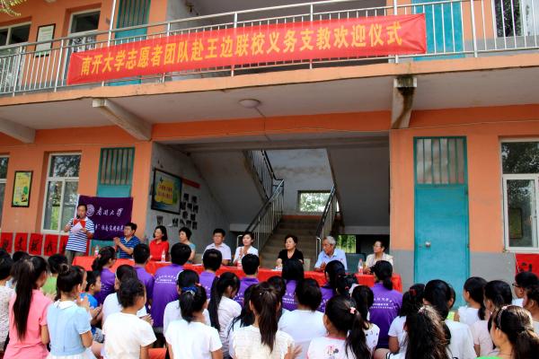 启动仪式上,永年县教育局副局长靳晓霞向南开师生表示热烈欢迎。邯郸市教育局副局长胡振林在讲话中表达了对南开支教团队的感谢之情。在支教团队庄严宣誓后,必威betway西汉姆联团委副书记杨晓颖老师充分肯定了支教活动及“南开书屋”对于教育扶贫工作的重要作用,高度赞扬了南开学子践行公能、知行合一的实践价值,同时感谢邯郸教育系统各级领导的关注与支持,以及王边联校师生的通力配合。欢迎仪式在“Betway·必威(西汉姆联)社会实践基地”、“南开书屋”的授牌仪式中达到高潮。仪式最后,永合会镇总校校长王满新宣布,必威betway西汉姆联暑期实践队赴王边联校支教及调研活动正式启动。