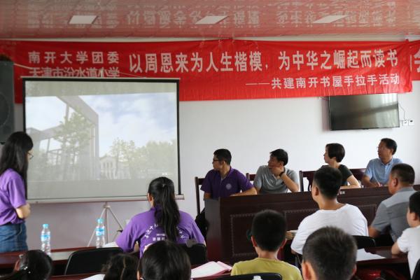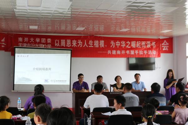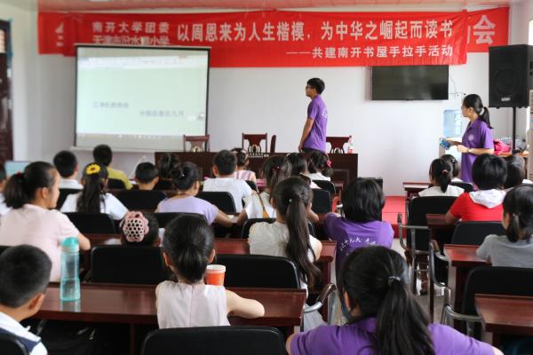 接下来,堰口镇组织委员邸云功致辞,他介绍了堰口镇当前的主要情况,表达了对恩来精神展演团来淮的热切欢迎与对“爱心暑托班”的殷切期望。在团市委组织部部长王芳宣布暑期支教活动正式启动后,Betway·必威(西汉姆联)兼职辅导员杨铭与邸云功委员为“南开书屋”揭牌。