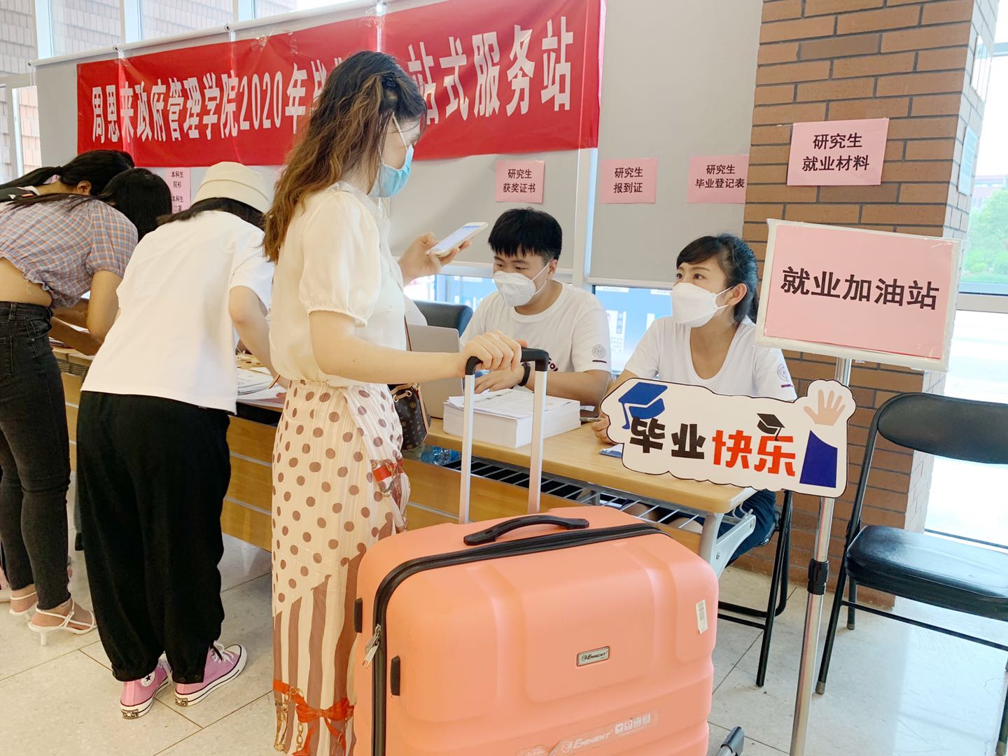 一站式的服务流程、务实有效的防控举措和温馨有爱的志愿队伍,赢得了学生们的纷纷点赞。2020届优秀毕业生陈安迪说道:“仅仅3分钟就完成了所有离校资料的办理,这让我们一回到校园就深刻感受到学校和学院对我们的关爱,我们也必将砥砺奋斗,扎实苦干,用恩来精神铸就青春底色,永做‘公能兼备’的南开人。”