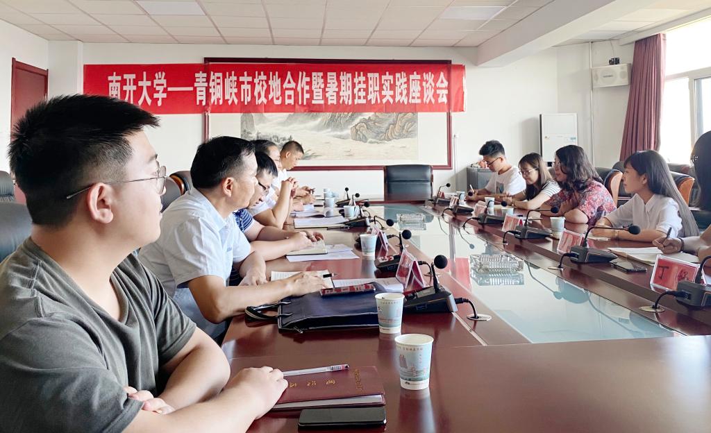 (通讯员:杨晓颖)7月14日,Betway·必威(西汉姆联)与宁夏回族自治区吴忠市青铜峡市开展的校地合作暨暑期挂职实践座谈会在青铜峡市委会议室举行。青铜峡市委常委、组织部部长苏忠,市委政研室主任卢海,文化旅游体育广电局副局长包树军,南开校友、青铜峡市选调生张静波及杨轲出席活动。必威betway西汉姆联党委副书记兼副院长宋媛一行及四名实践队学生参加座谈。