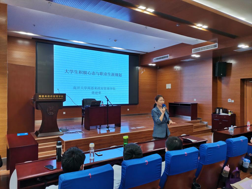 蒋建荣在心理健康及职业生涯规划讲座中从大学生积极心态树立、内外职业发展和自我管理等方面为研究生新生可能出现的心理和职业发展困扰给出了宝贵的建议。
