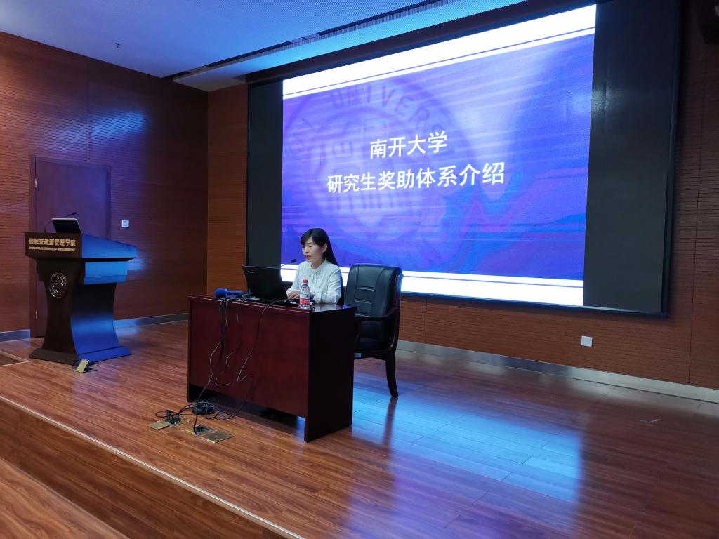 杨晓颖在奖助政策宣讲中从奖、助、酬三个板块进行了详细的讲解,通过新老奖助体系结构、比例等方面的对比,激励研究生潜心学术、竞攀科研高峰。