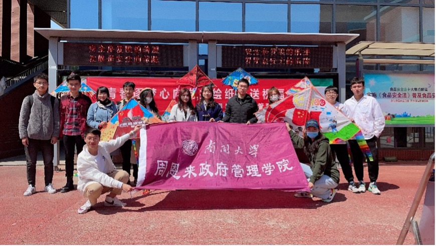 线下路演活动在春意盎然的南开园中开展。活动展出了各具特色、寓意丰富的手绘风筝,吸引了过往的老师和同学。大家共同精心绘制风筝载着同学们对党和国家的美好期盼与祝福乘风翱翔,将此次活动引向高潮。