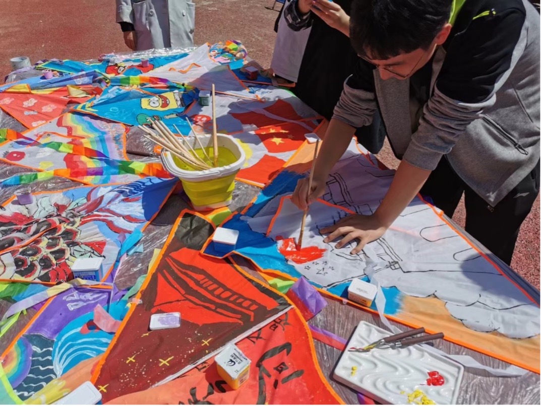 “我的想法是在风筝上绘制了国旗与万里长城,表达对祖国山河的热爱”、“希望我的风筝可以描绘红军战士爬雪山过草地的艰辛历程,纪念先烈们革命成果的来之不易”……周政学子用心创作出具有深刻意义和独特风格的精美风筝,展现了政府学院青年学子爱党爱国、开拓进取的精神风貌。