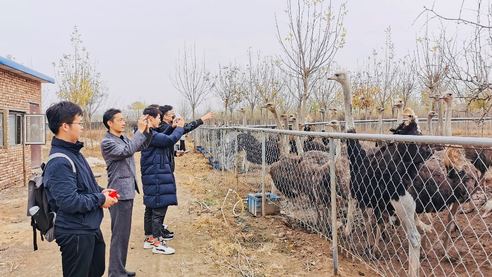 之后,一行人来到本次活动的第二站——徐堡村鸵鸟养殖基地。同学们在这里了解鸵鸟的养殖流程,并参观了鸵鸟的“温暖小家”。看到鸵鸟长长的睫毛和奔跑时憨态可掬的样子,大家都忍俊不禁。此时,远处传来的一声清越的鹿鸣吸引了大家的注意。走向养殖基地深处,一行人来到梅花鹿养殖区,感受着“呦呦鹿鸣,食野之苹”“树深时见鹿”等诗句描绘的意境,享受着乡村的美好风光。正如习近平总书记所说:“乡村振兴,关键是产业要振兴。”徐堡村通过发展特色养殖产业,实现了多渠道增加农民收入,带领农民走向富裕,切实提升人民的获得感与满足感。