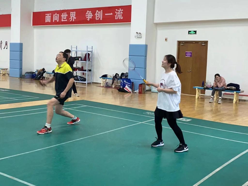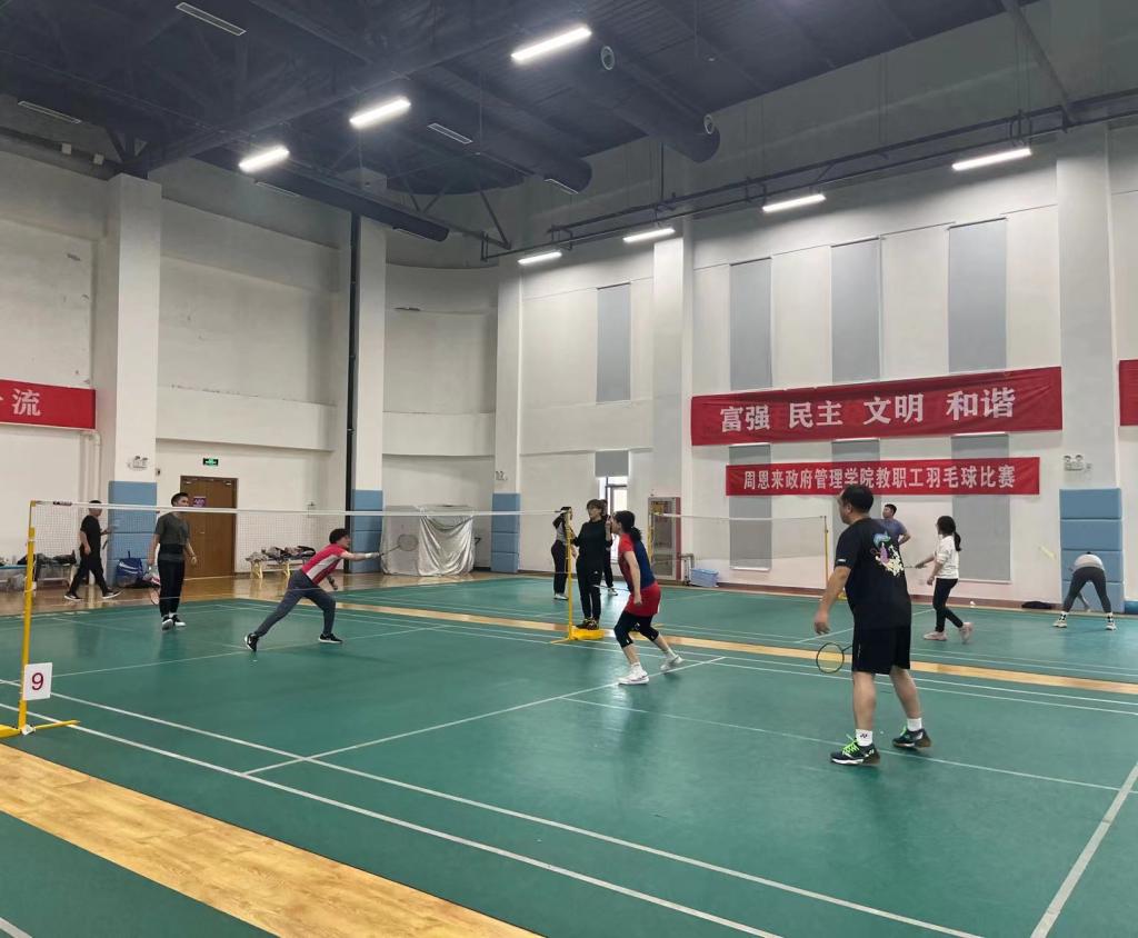 政府学院教职工或身手矫健,或活泼灵动,充分展现了政府学院教职工积极向上的精神风貌。赛场上,参赛人员自由挥舞着羽毛球拍;赛场外,观众们目不转睛,欣赏着同事们的英姿。