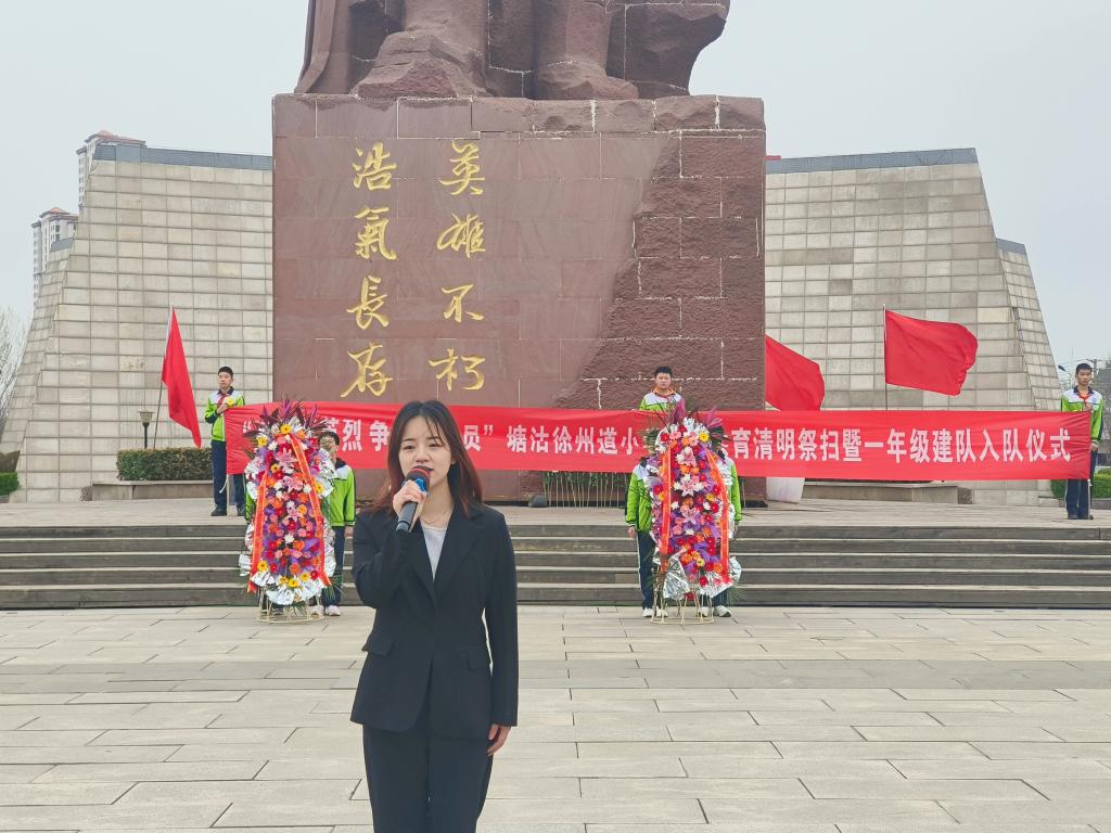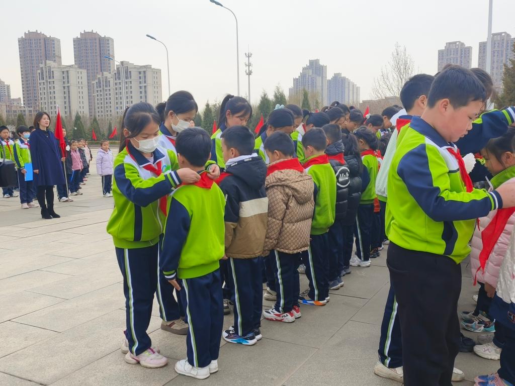 在这个神圣的时刻,徐州道小学大队委员会宣读了组建一年级少先队组织的决定,并向新队员授予红领巾。在先辈精神的强烈感召下,少先队员们面向队旗宣誓并庄严呼号:“时刻准备着,为共产主义事业奋斗!”铿锵的誓言回荡在广场中央,展现着共和国的青春力量。纵使春寒料峭,现场的热情依旧不减分毫。