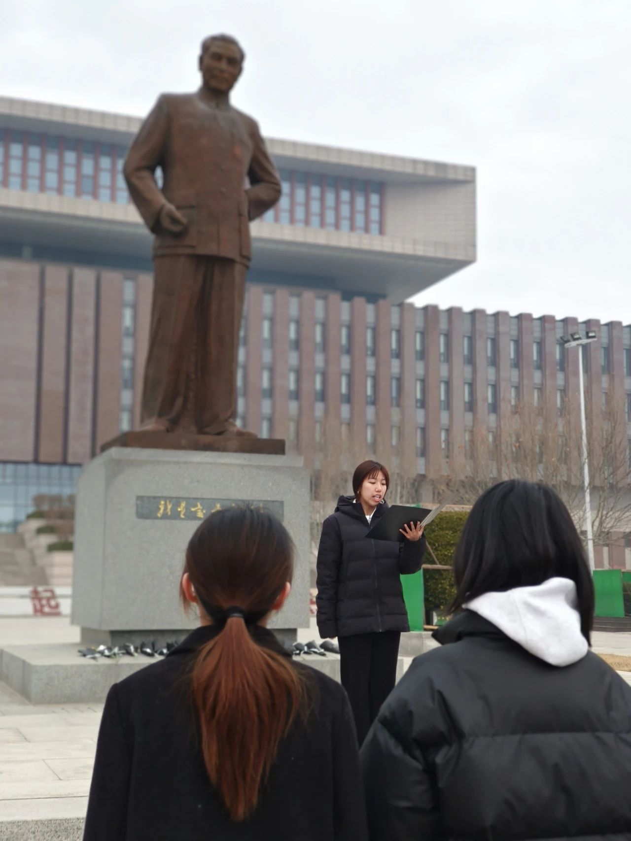 同学们全体肃穆,手持鲜花,向周总理默哀,随后上前将手中的花放置总理像前的石阶上,深鞠躬表达对周总理的缅怀之情与深深敬意。