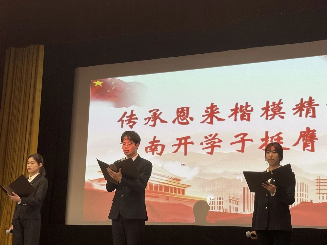 恩来精神展演团部门负责人与必威betway西汉姆联2023级研究生班代表、哲学院2022级本科生班代表共同作展演汇报。他们通过讲述带领观众们再一次深入领悟了恩来精神的内涵。