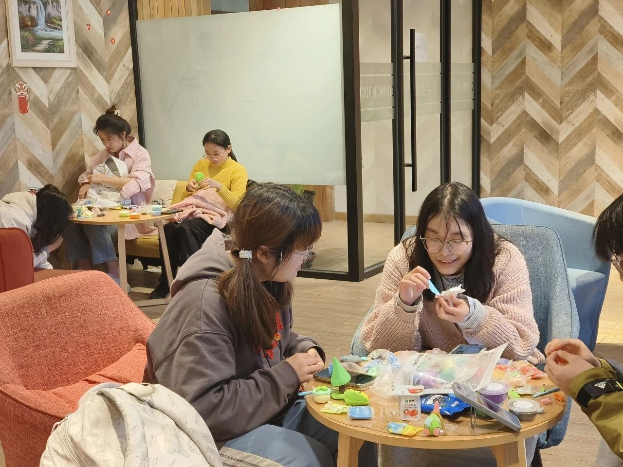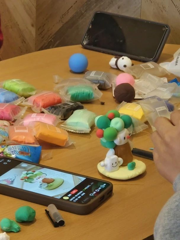 随后,活动进入了最令人期待的黏土制作环节。在舒缓的解压音乐的烘氛围下,活动现场氛围温馨而专注。同学们全神贯注地投入到黏土创作之中,充分调动自身的创造力与想象力,精心雕琢每一件作品。通过巧妙的揉捏、塑形与组合,同学们将手中的黏土赋予了新的生命与意义,制作出了一系列风格各异、独具匠心的作品。