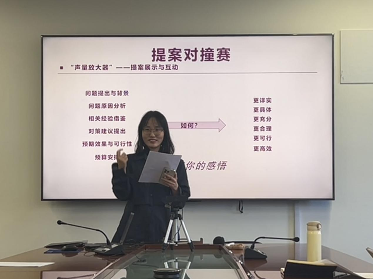会议伊始,付昱学长结合自身丰富的学生工作经验,特别围绕提案构思与写作这一关键环节,深入剖析了成功提案背后的思考与策略,为在场学生代表带来了一场干货满满的分享,让大家对学生代表工作职责有了更深入的理解,收获颇丰。