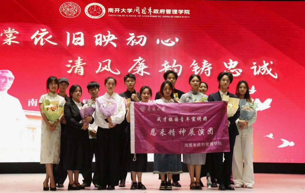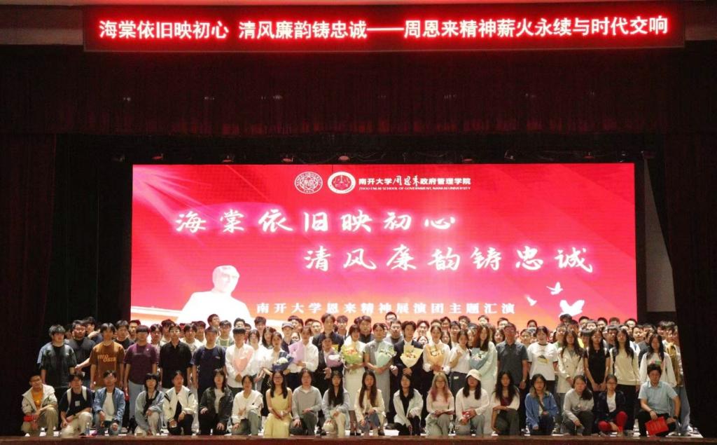 恩来精神展演团的演出虽然落下帷幕,但恩来精神的传承正待我们行动,通向未来时代的篇章还在续写。有幸站在前人的肩膀上,更要努力接续前辈们的火炬,铭记“愿相会于中华腾飞世界时”的谆谆教诲,风华正茂,挺膺担当,携一缕海棠香,以真才实学服务人民,以创新创造贡献国家,让青春在强国建设、民族复兴的火热实践中绽放绚丽之花!