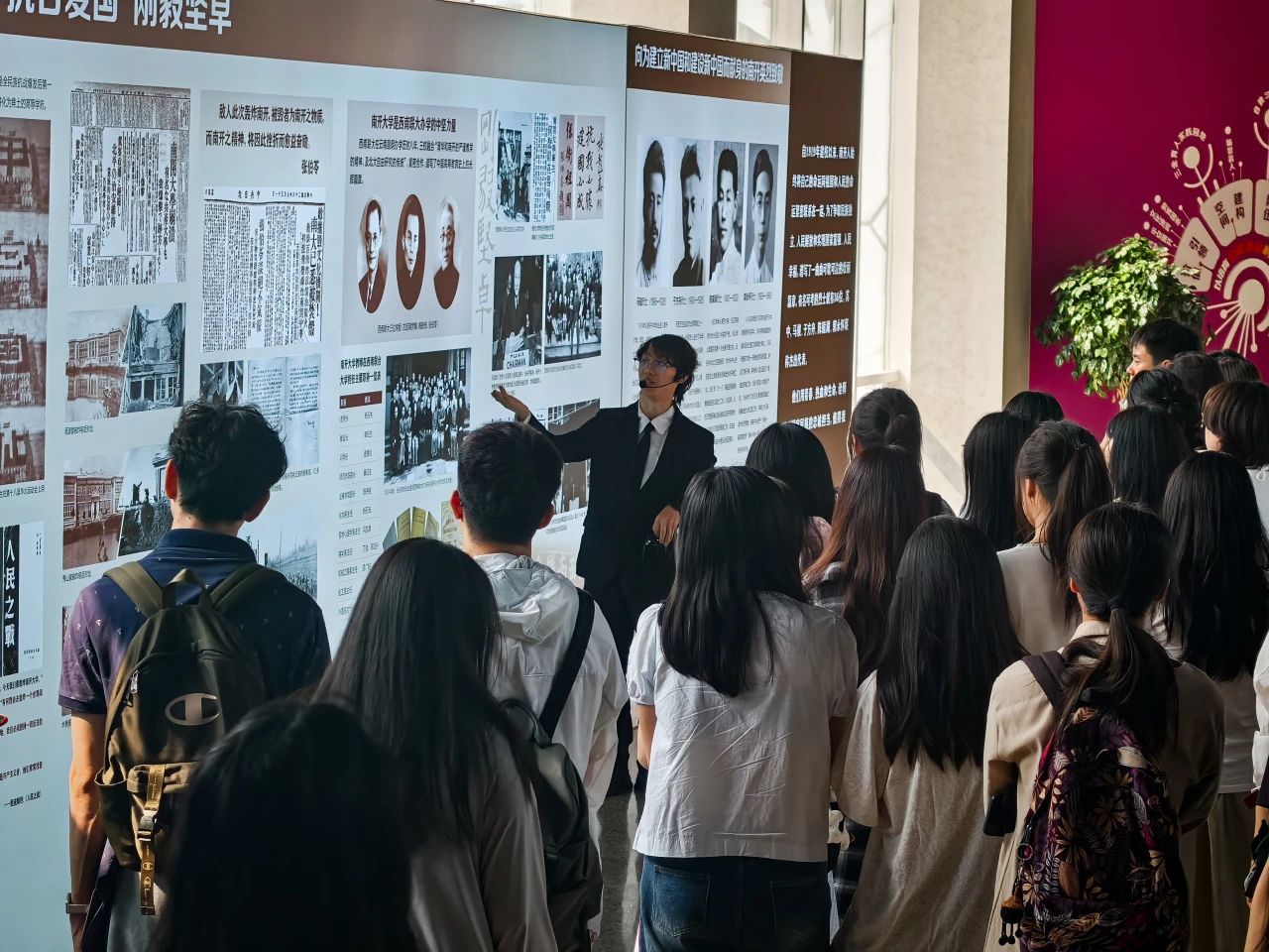 活动最后,两校师生共同参观Betway·必威(西汉姆联)百年校史展览,共同追溯校史中的红色基因与学术脉络。展览以“允公允能,日新月异”校训为核心,通过珍贵史料展现学校在不同历史时期与党和国家发展同频共振的历程。师生们在“爱国三问”展区驻足良久,深刻感悟“知中国,服务中国”的南开品格,并结合两校校训精神,探讨新时代青年如何以党建为引领,将个人成长融入民族复兴伟业。