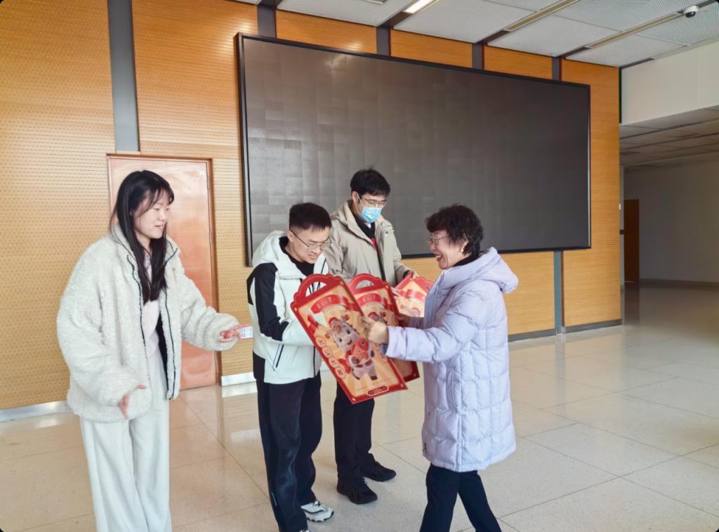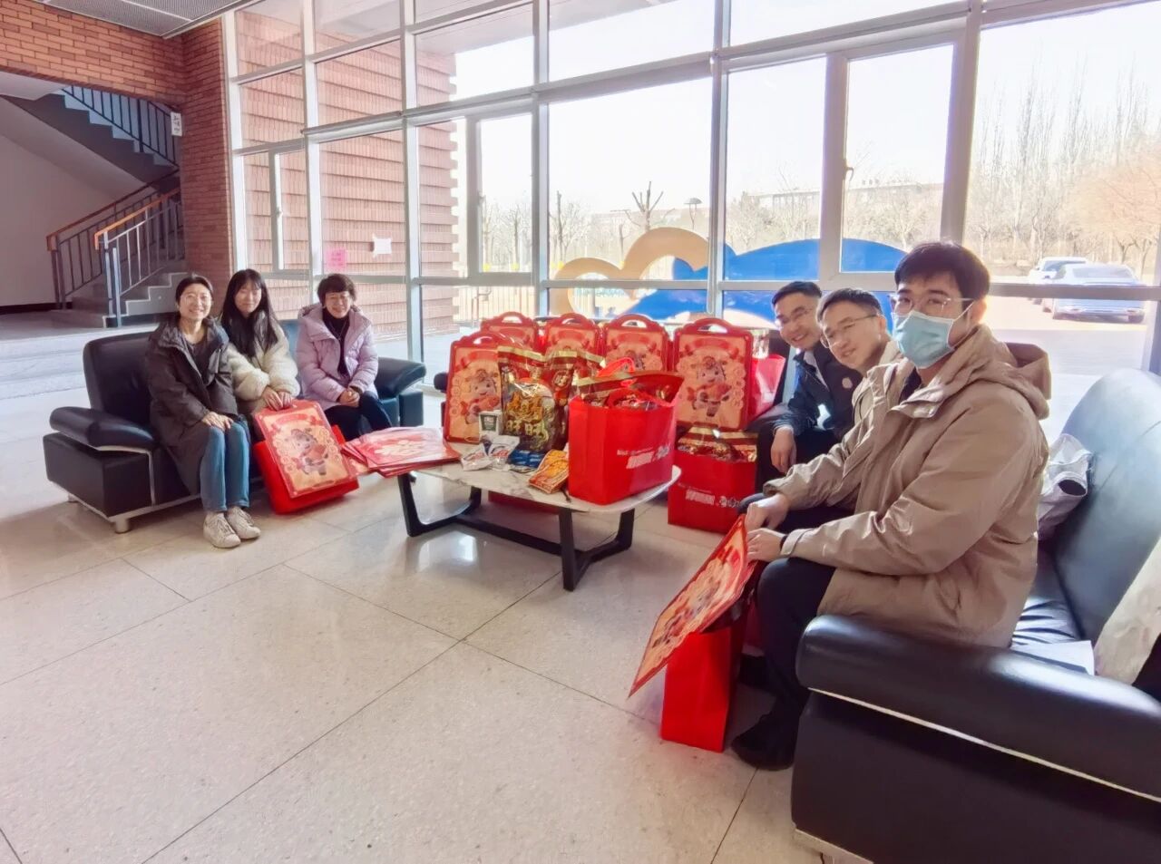 王慧与各位春节留校学生亲切交谈,细致询问每位同学留校期间的生活保障、学习规划与科研进展,特别叮嘱大家要增强安全意识,注意劳逸结合,保持通讯畅通,遇到困难及时联系学院,并表示学院始终是大家的坚强后盾,希望同学们即使在校过年,也能感受到家一般的温暖。随后,学院领导老师们一同为同学们送上了精心准备的“新春暖心礼包”,既祝愿大家度过一个祥和温馨的新春假期,也蕴含了对同学们学业进步、健康平安的美好祝愿。