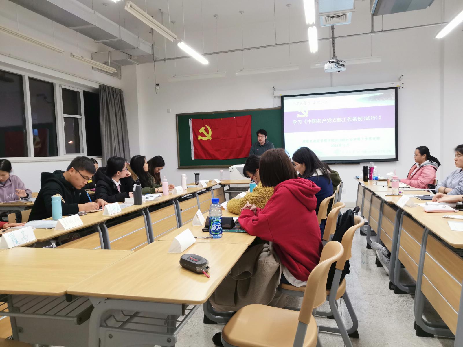 (通讯员:杨毅、王政浩)“各位党员同志,你还记得自己面对党旗、举拳宣誓时的心情吗?你还记得在那个无比庄严的时刻、自己对党和人民许下的铮铮誓言吗?”近日,2018级社会学硕士生党支部开展了一次支部书记讲党课活动,以“牢记誓言、永葆初心”为主题,带领支部全体党员及入党积极分子、申请人进行了一次党性专题教育,以入党誓词的分析解读理解共产党员的初心使命,促进基层党支部的思想政治工作,进一步了提高支部党员的理想信念和政治水平。
