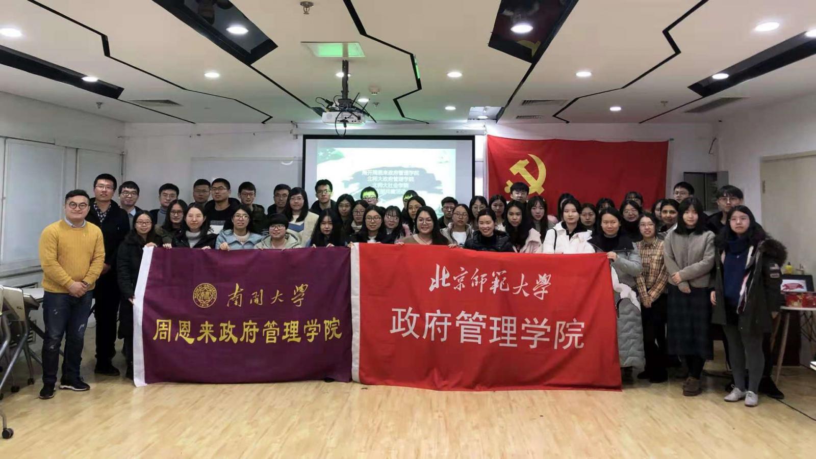 本次学院组织党员赴京,与北京师范大学政府管理学院、社会学院学生党支部开展了一次主题为“共建共享,携手前行”的党建交流和支部共建活动。北京师范大学政府管理学院分党委副书记郭智芳老师代表北师大政府管理学院表达了对必威betway西汉姆联党员同学们的欢迎,并讲到:“大家作为管理类的学子,要牢固树立服务意识,将自身发展与社会需要关联,在自身成长的同时,努力创造社会价值。跨校、跨学院的支部共建对于党员的成长、支部的发展很有意义,各支部要发挥专业特点、学院特色,共建共享,携手前行。”北师大政治学理论硕士生党支部的万厚利同学讲到:“Betway·必威(西汉姆联)和北京师范大学都是百年老校,中国现代教育的先锋者。师大学子急公好义,南开学子允公允能,两校在党的历史上、在共和国的历史上都有着浓墨重彩的一笔。回顾往昔看今朝,今年是改革开放四十周年,党的十一届三中全会就是在十二月召开,我们在这个时间点进行支部共建,共同交流党建工作心得,对每个支部都意义非凡。”