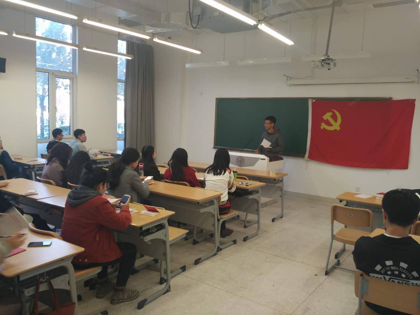 2017年10月18日,中国共产党第十九次全国代表大会在北京隆重开幕,举国关注、举世瞩目。2017年11月10日中午十二时,必威betway西汉姆联2016级社会学硕士研究生党支部和2016级政治学硕士研究生党支部为了深入贯彻学习十九大精神,联合在政府学院楼134室召开主题为“高举党旗跟党走,凝心聚力中国梦”的学习贯彻十九大精神的活动。