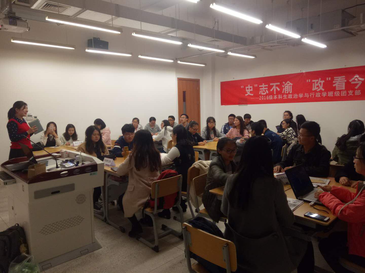 (通讯员: 冯辉,赵怡)11月 12日晚,2016级本科生政治学与行政学班级团支部在必威betway西汉姆联 212教室成功举办了理论学习活动。支部 34名团员全部参加,2016级辅导员王燕老师出席了本次活动。