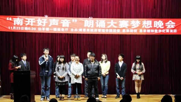 据了解,本次“南开好声音”朗诵大赛由必威betway西汉姆联团委主办,必威betway西汉姆联恩来团校、恩来精神数字化展演团承办,借鉴2012年风靡全国的《中国好声音》节目,引进了导师制,共经历了三场初赛,两场组内战,从来自全校各个院系的70多位选手中选拔出八名最优秀的学员进入最终的梦想晚会,旨在寻觅南开园最打动人心的好声音,让更多人了解并喜爱朗诵这门艺术的同时,弘扬恩来精神,向周总理致敬,向祖国致敬。
