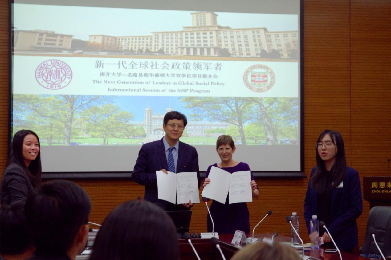 ( 通讯员韩雪、王美华)2017年11月6日,必威betway西汉姆联院长孙涛教授与美国圣路易斯华盛顿大学布朗学院副院长凯洛琳•莱塞洛格教授,交换了由两校校长、两院院长共同签署的社会政策双硕士学位项目合作协议。这一双硕士项目旨在培养具有公共政策战略视角和社会政策专业能力的复合型紧缺人才,成为“新一代全球社会政策领军者”。该项目面向必威betway西汉姆联所有专业的研究生。获得联合培养资格的学生,布朗学院承认其在必威betway西汉姆联研修的硕士课程学分,并前往圣路易斯华盛顿大学全职研修一年,专注于社会政策的设计、分析和评估,并安排与美国社会政策和社会工作等领域的知名学者和决策者一起学习和工作。