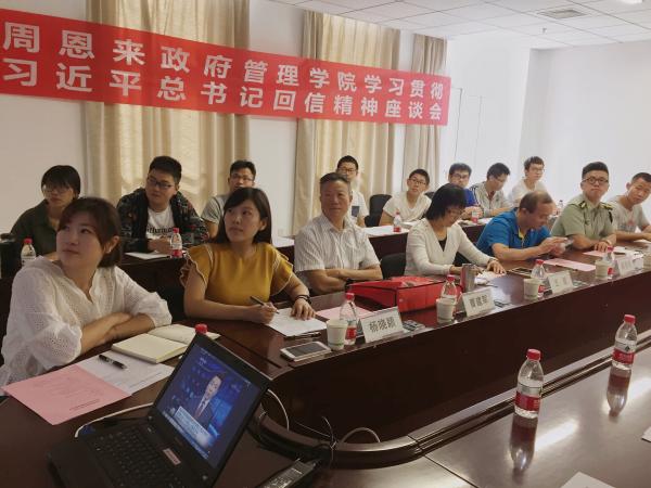 以此次座谈会为契机,政府学院将把认真学习、深刻领会、贯彻落实习近平总书记重要回信精神作为当前和今后一个时期的一项重要政治任务,与迎接宣传贯彻党的十九大紧密结合,与“两学一做”学习教育常态化制度化紧密结合,与贯彻落实全国高校思想政治工作会议精神紧密结合,与全面深化高等教育综合改革紧密结合,自觉统一思想和行动,切实推动相关工作迈上新台阶。