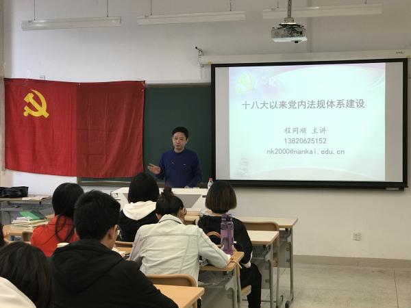 程同顺老师以“十八大以来党内法规体系建设”为主题,为同学们梳理党的十八大召开以来制定和修订的中国共产党党内一系列法规文件,通过与新中国建立以来几次重大的法律体系变动比较,从法规体系完善的角度,向同学们展示了十八大以来中国特色社会主义法律体系以至党的规范条例的发新发展和新动态。
