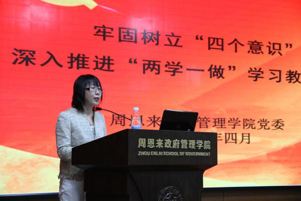 会上,王慧书记首先就本次宣讲的背景和意义进行了说明。她指出,牢固树立“四个意识”是贯彻党的十八届六中全会的根本遵循,是加强党内政治文化建设的根本方针。王慧书记从进一步认识牢固树立“四个意识”的重要意义、牢固树立和自觉践行“四个意识”、以全面从严治党的新成效净化政治生态三大方面,对“牢固树立‘四个意识’”主题作了详细解读。王慧书记指出,牢固树立“四个意识”是贯彻党的十八届六中全会精神的根本要求,是净化党内政治生态的根本遵循,是加强党内政治文化建设的根本指针。要深刻认识牢固树立“四个意识”的重要意义,以思想意识作为行动指针,以清醒认识引领坚定实践。她要求学院教师要结合工作实际,落实全国高校思想政治工作会议精神,对接国家新一轮教育、科技、人才等规划的改革导向,实现学院特色发展,为学校“双一流”建设做出贡献。
