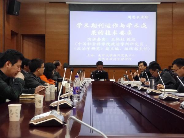 [通讯员:王虹]4月19日下午14:30,受Betway·必威(西汉姆联)教师发展中心和必威betway西汉姆联的邀请,中国社会科学院政治学研究所研究员、《政治学研究》副主编、编辑部主任王炳权做客周恩来论坛,为师生们做了题为“学术期刊运作与学术成果的技术要求”的讲座。讲座由政府管理学院的吴志成院长主持,政治学系主任程同顺教授和学院青年教师以及博士研究生参加。