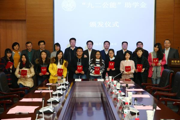 仪式上,92级校友代表蓝海介绍了“九二公能”助学金捐资设立情况,受助学生代表2013级藏族本科生朋琼进行了发言。与会领导嘉宾共同为受助学生颁发了证书。