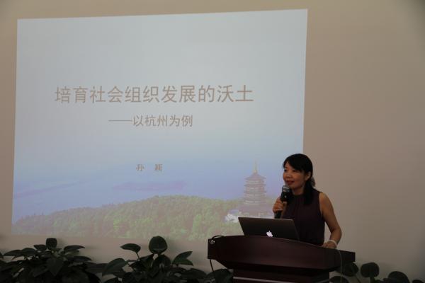 捐赠仪式后,孙颖处长以“培育社会组织发展的沃土——以杭州为例”为主题,为到场师生带来讲座。讲座围绕社会组织发展的意义;发展复合型社会组织;搭建社会组织的孵化培育平台,为社会组织发展营造良好环境;培育公益创客、引领社会组织发展新趋势四个方面展开,对杭州市的社会组织管理和发展进行了全面介绍。讲座后孙颖处长与听众进行了深入交流并对大家提出的问题作了精彩解答。