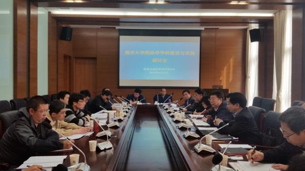副校长朱光磊从历史和现实两个维度出发,分析了新一轮学科评估背景下南开政治学学科建设的普遍性和特殊性,指出要坚持南开政治学的学科特色,注重发挥综合优势。他指出,要明确政治学学科的社会科学属性,加大政治学研究的社会调研力度;重视参评工作的总体协调和基础性学科建设,鼓励学科交叉融合;既要巩固传统学科的优势地位,又要促进新兴学科的发展壮大。参会教师分别就学科梯队建设、人才培育和引进、兄弟高校政治学学科力量比较以及国际交流等方面问题发表了建议和意见。